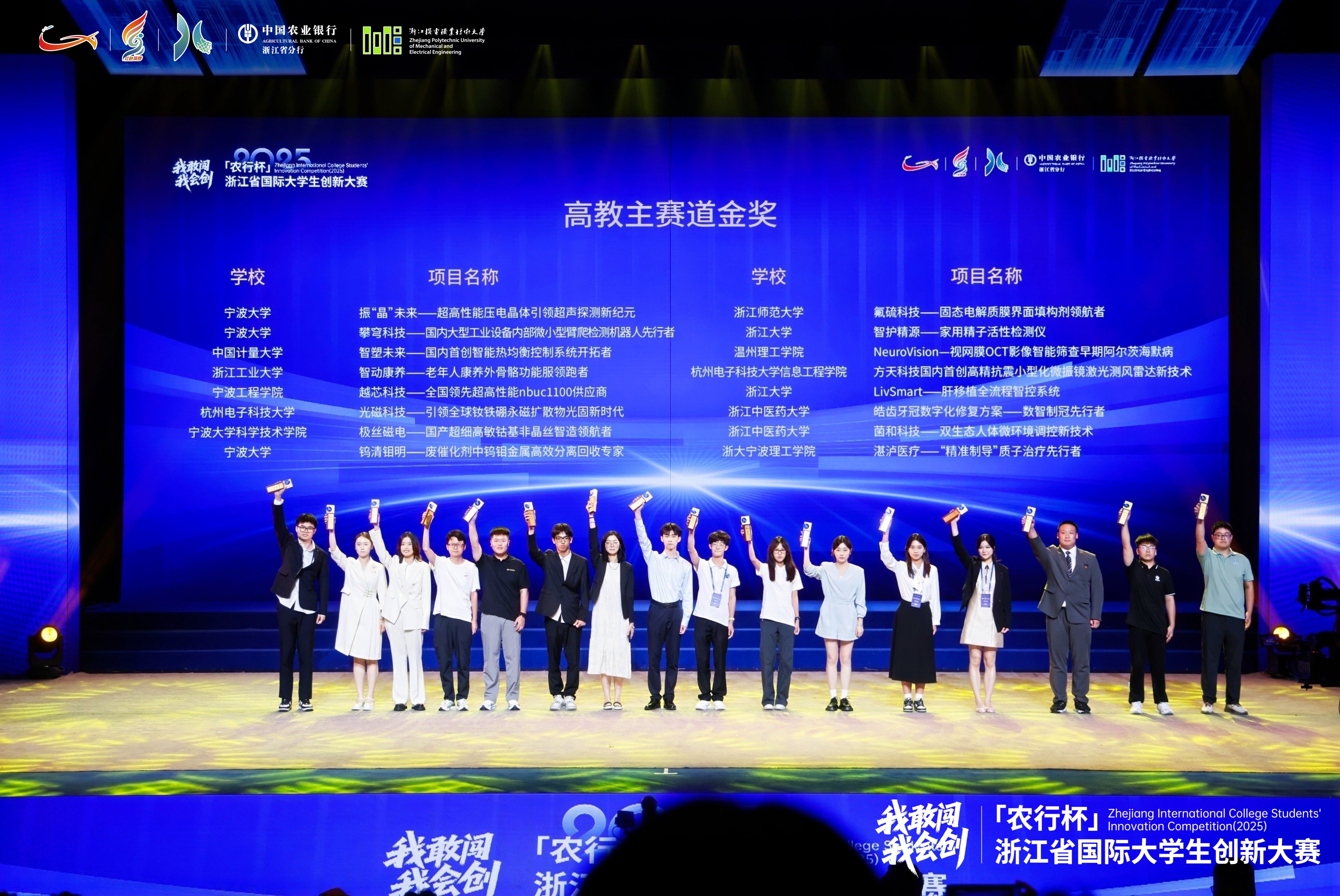 7月11日-7月13日,为期三天的 “农行杯”浙江省国际大学生创新大赛(2025)在浙江机电职业技术大学圆满落幕。我校19支参赛队伍进入省决赛,经过激烈角逐,斩获9金10银的优异成绩!金奖项目数位列省属高校第三,创省赛历史最好成绩,连续三年刷新我校省赛历史纪录。